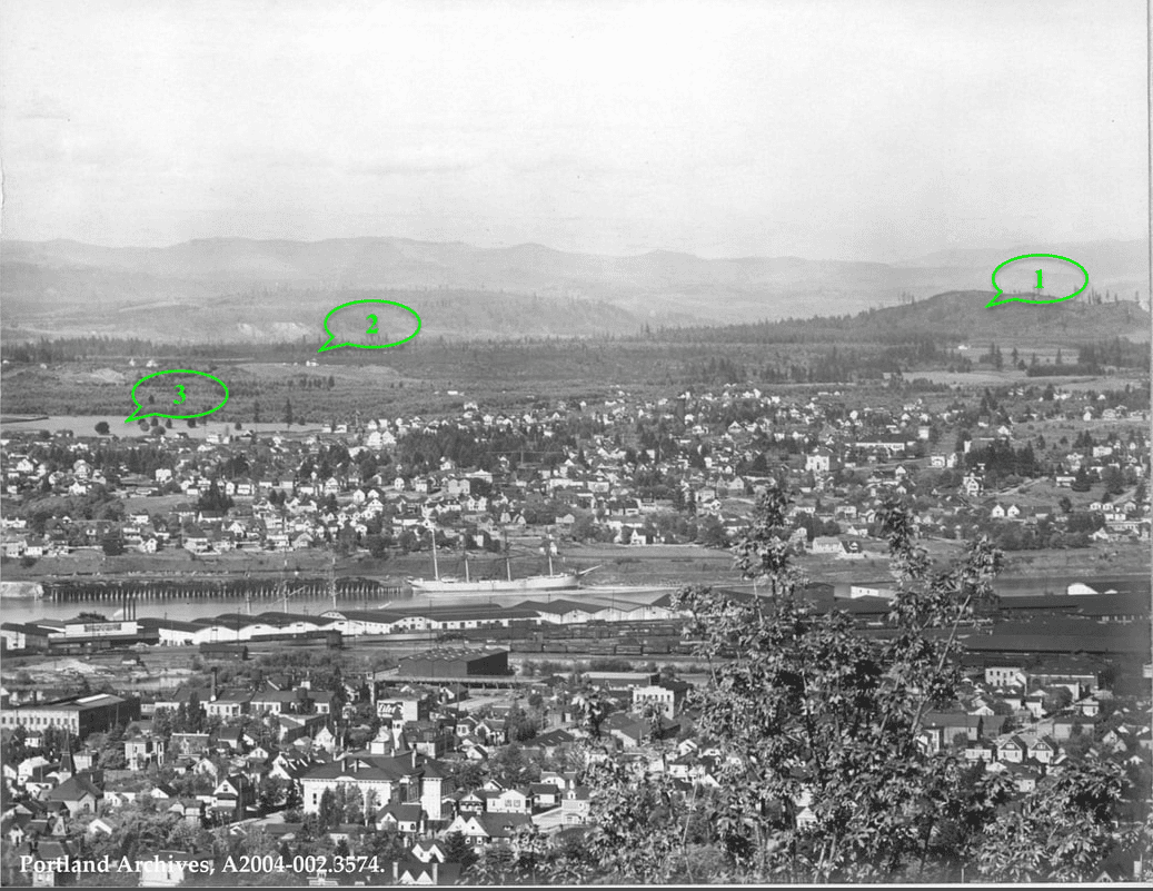 - Point 3. This open area is farm land that was on a trajectory to be part of the broader Irvinginton development, but not yet subdivided on the ground. Doug Decker says, it's bordered by today’s NE Thompson-Fremont between 7th and 15th. This may have been used by the Multnomah Fair Association for various activities.